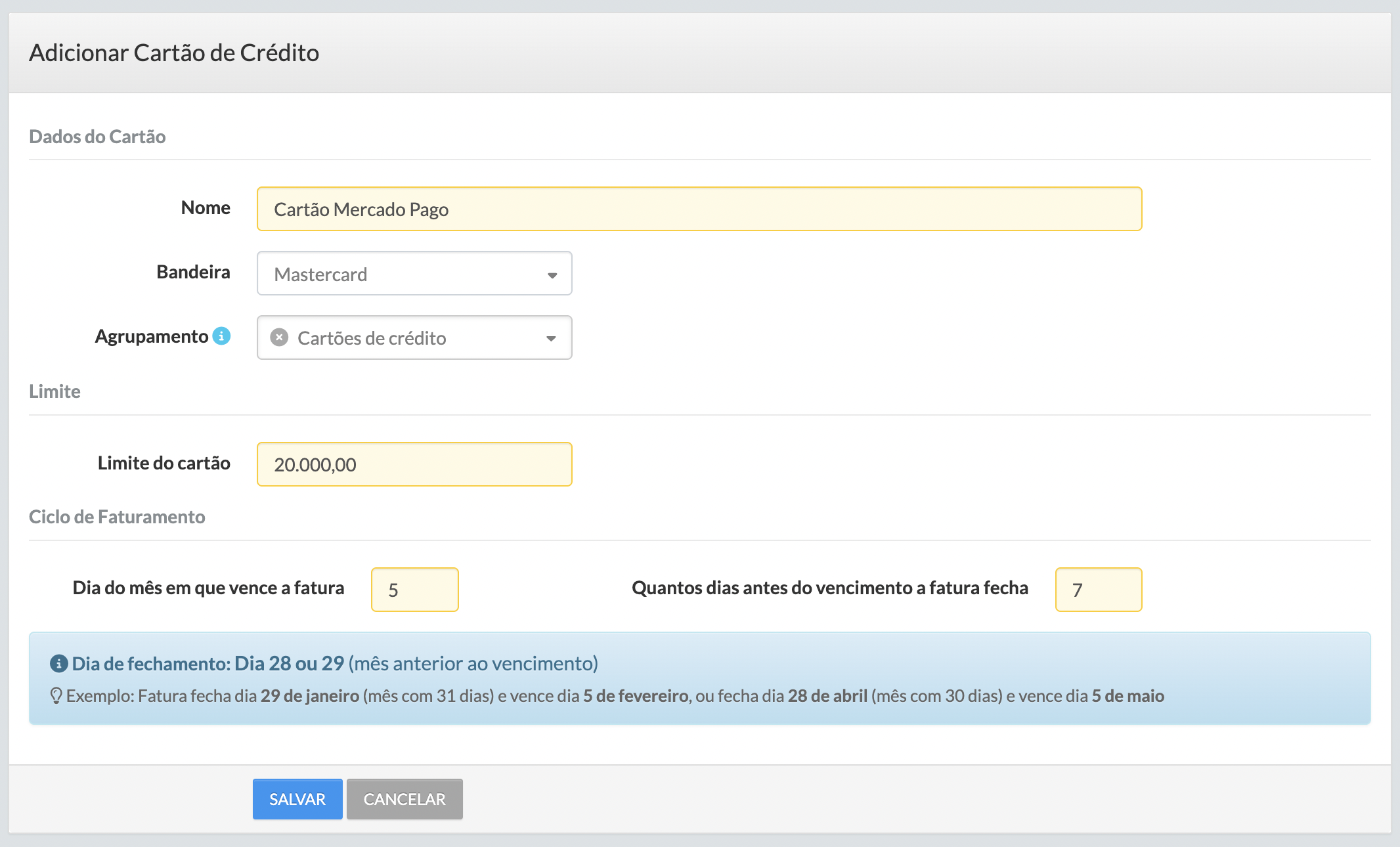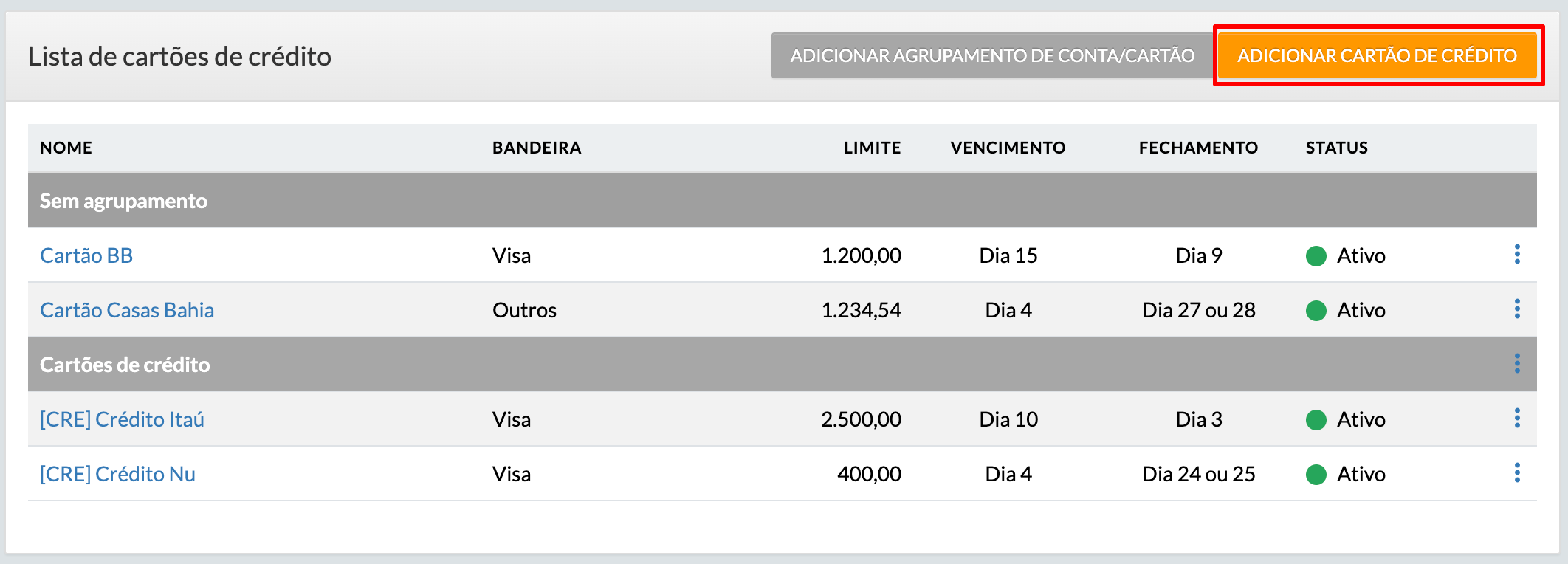 5. Você também pode definir a bandeira do seu cartão e usar os mesmos agrupamentos que você já usa nas contas bancárias.