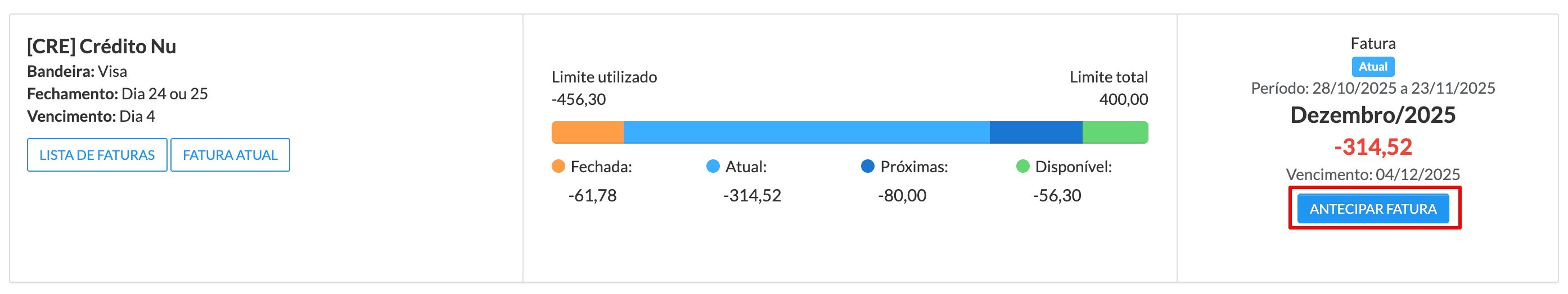 O registro dessa antecipação é semelhante ao pagamento de uma fatura fechada.